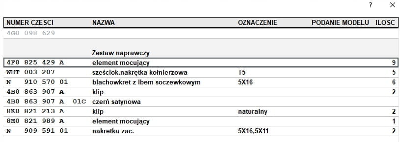 UWAGA! W jednym modelu auta, mogą występować różne warianty części. W przypadku niepewności o właściwy dobór części, zalecana jest weryfikacja wg numeru VIN