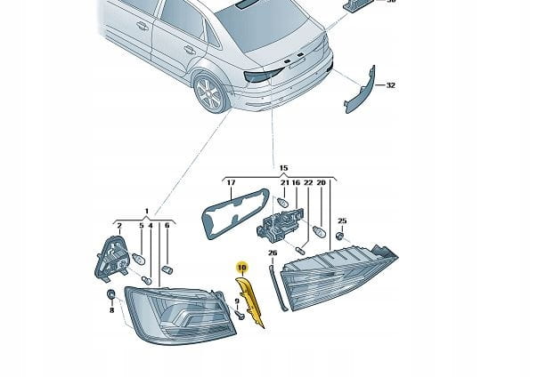 Nowa Oryginalna zaślepka lampy tył A3 8V