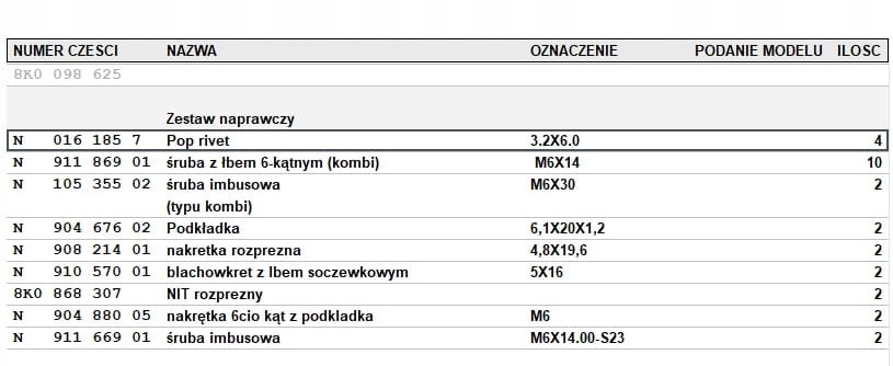 Numer katalogowy: 8K0098625