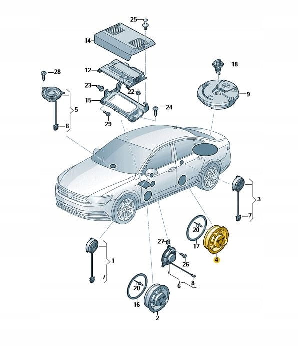 Głośnik niskotonowy tylnych drzwi VW Arteon/Passat/ Taos nowy oryginalny