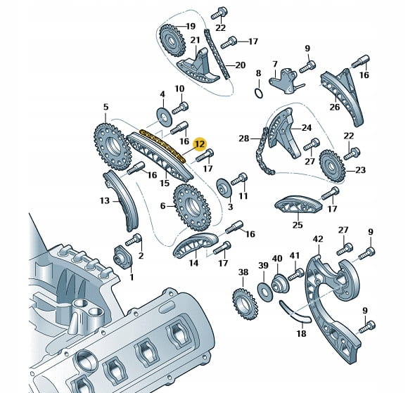 Łańcuch rozrządu Audi/VW 059109229J. Produkt nowy, oryginalny