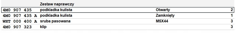 W jednym modelu auta mogą występować różne warianty części. W przypadku niepewności o właściwy dobór części zalecana jest weryfikacja według numeru VIN.