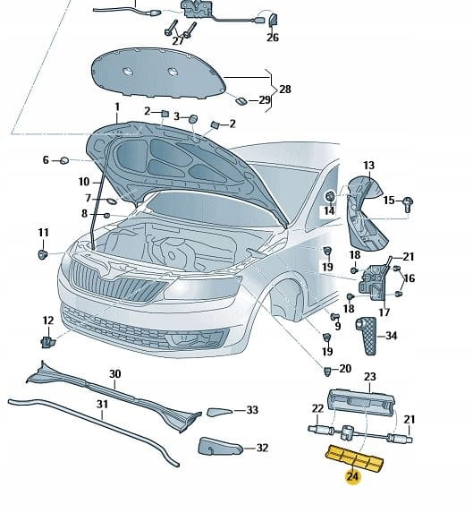 NAKŁADKA UCHWYTU LINEK CIĘGNA POKRYWY MASKI SKODA FABIA 3 6R0823347