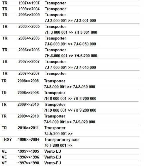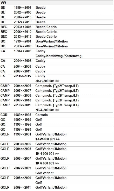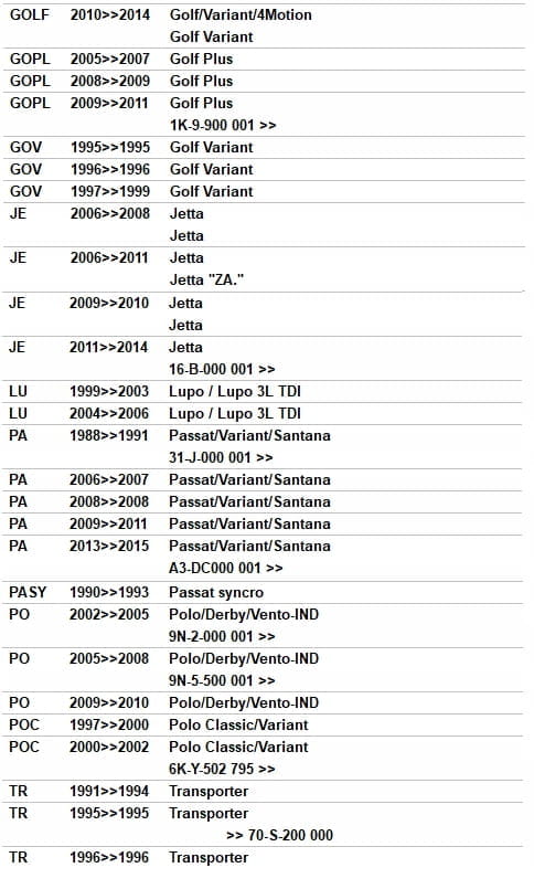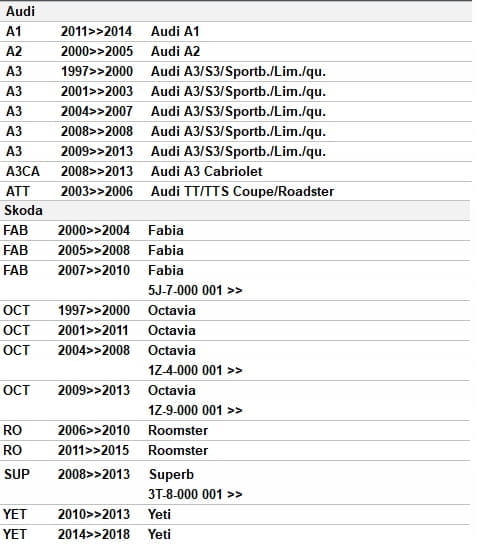 W przypadku niepewności o właściwy dobór, zalecana jest weryfikacja wg numeru VIN.