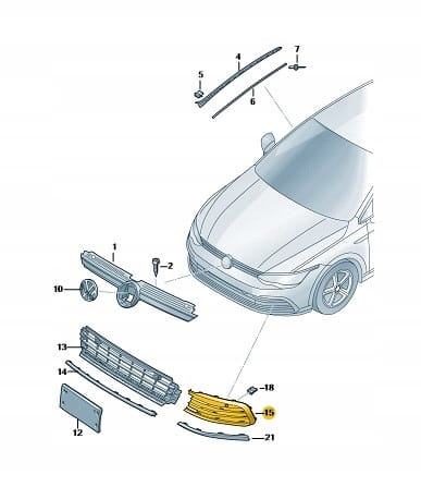 Kratka przedniego zderzaka PRAWEGO, do VW GOLF 8 VIII (5H) 2020+.