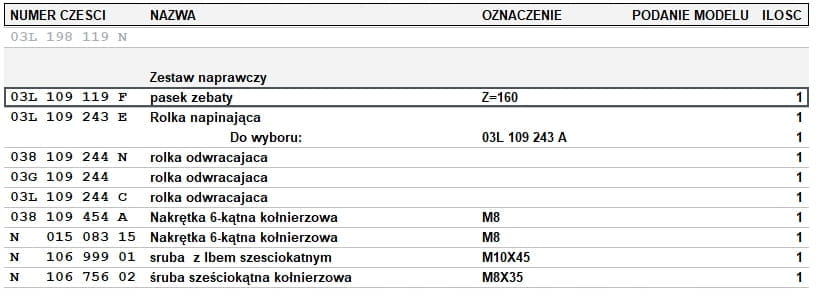 NOWY ORYGINALNY KOMPLETNY ROZRZĄD 2,0 TDI 03L198119N VW SEAT AUDI ASO