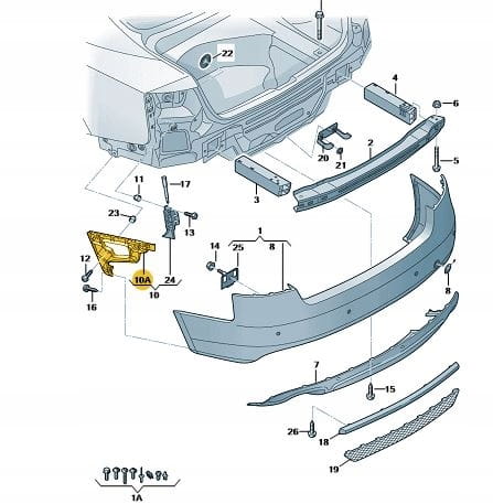 New ASO ślizg zderzaka AUDI A4 B8 lewy tył sedan
