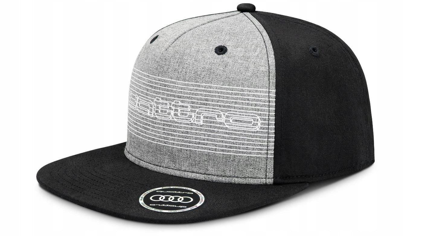 - Pierścienie Audi w kolorze jasnoszarym po prawej stronie zapięcia snapback z tyłu