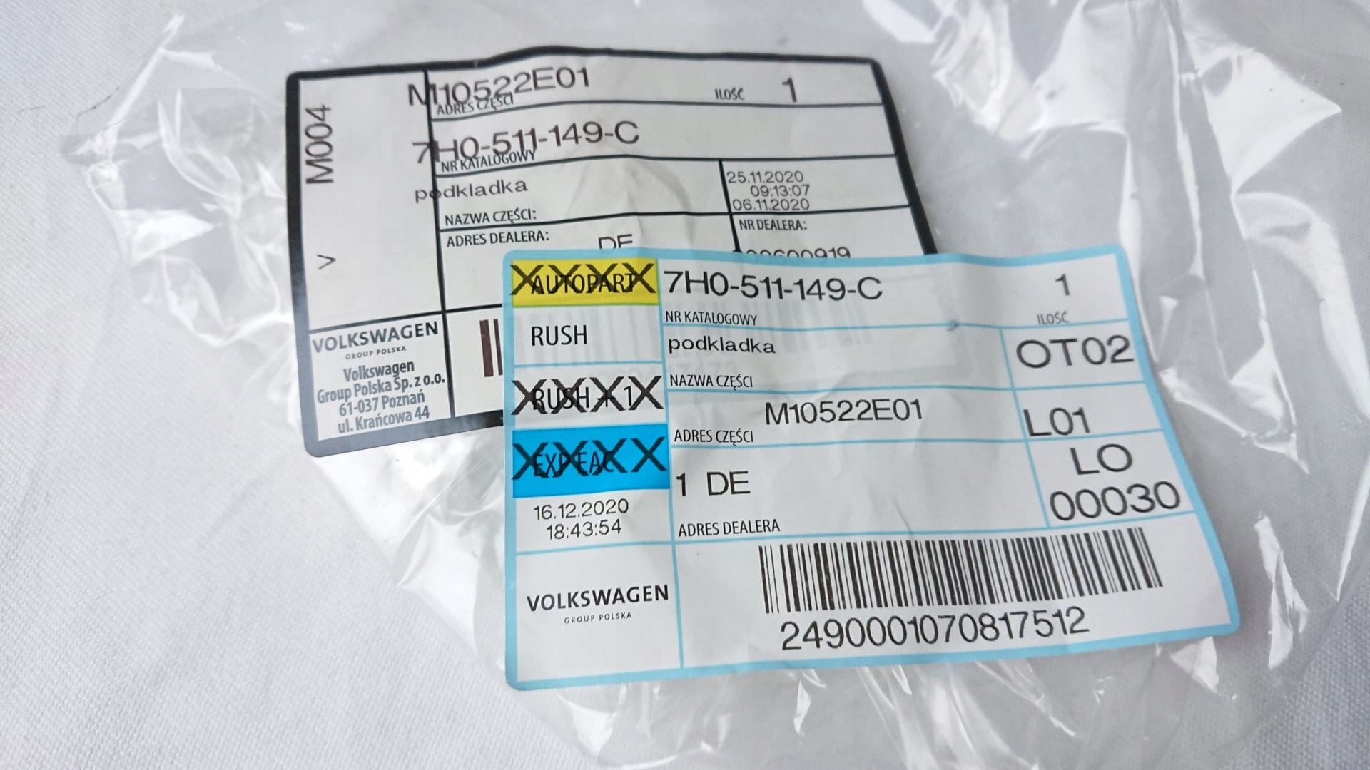 Nowa oryginalna podkładka VW OE 7H0511149C