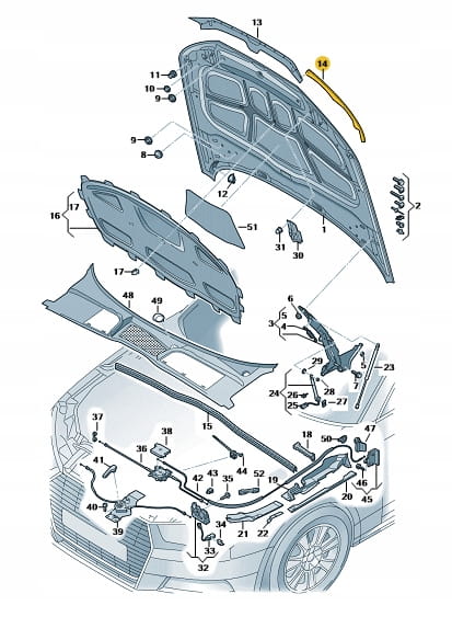Nowa oryginalna uszczelka maski Audi A5/S5/RS5 strona lewa