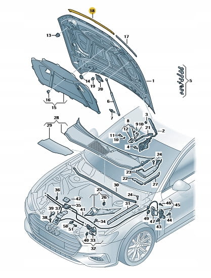 Nowa oryginalna uszczelka maski Audi A6/S6