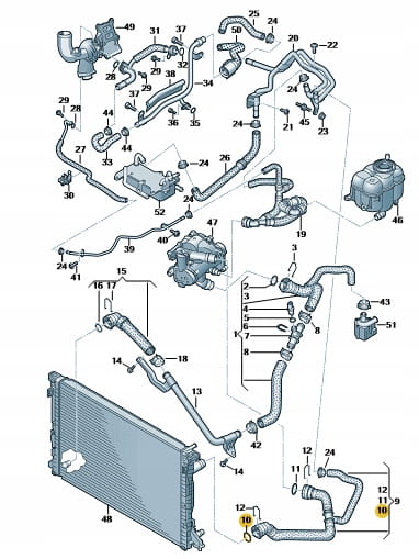 Nowy oryginalny o-ring chłodnicy wody Volkswagen