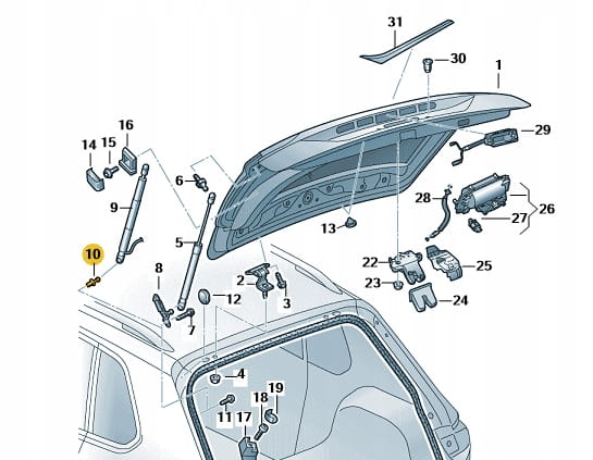 Nowy oryginalny sworzeń siłownika tylnej klapy do Skody/Seat 657827850B