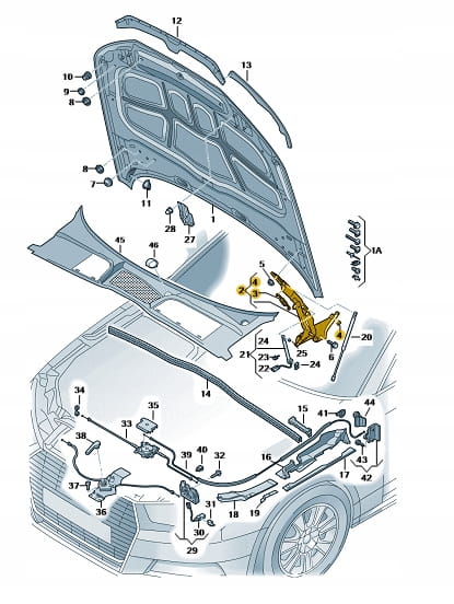 Nowy oryginalny zawias maski Audi A4/S4 strona prawa