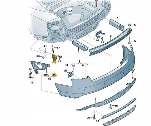 Nowy, oryginalny ślizg / mocowanie zderzaka tylnego Audi A4 B8