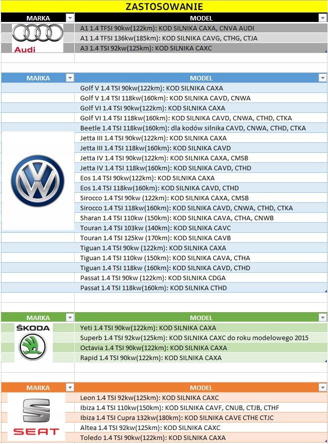 Zestaw zgodnie z zaleceniami producenta obligatoryjnie wymieniana naprawie rozrządu silników 1,4 FSI / TSI z grupy Volkswagen.