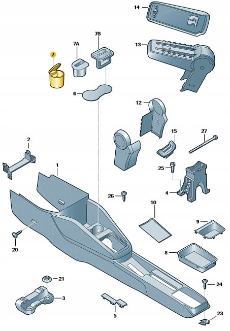 Mocowana w tunelu środkowym w miejscu na napoje