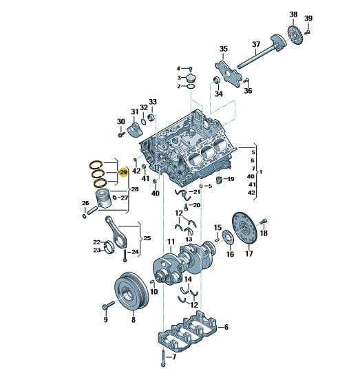 Oryginalny zestaw pierścieni tłokowych VW AUDI