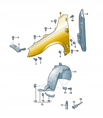 Przedni błotnik Skoda Octavia strona prawa. Produkt nowy, oryginalny