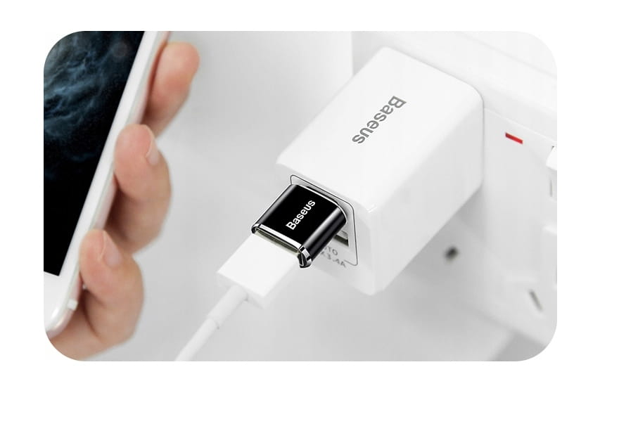 Baseus adapter przejściówka z USB na USB-C typ C o kompaktowych wymiarach oraz eleganckiej budowie umożliwia ładowanie oraz swobodną synchronizację danych. Przejściówka pozwala nam na połączenie urządzeń posiadających slot USB-C, poprzez kabel USB do innych urządzeń (w zestawie brak dołączonego kabla). Pozwoli nam to na bezproblemowe podłączenie innych urządzeń, które współpracują poprzez połączenie złącza USB, jak np. Power Banki.
