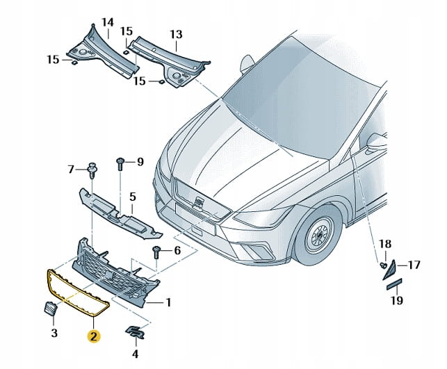 Ramka grilla Seat Ibiza 6F08546439B9. Produkt nowy, oryginalny