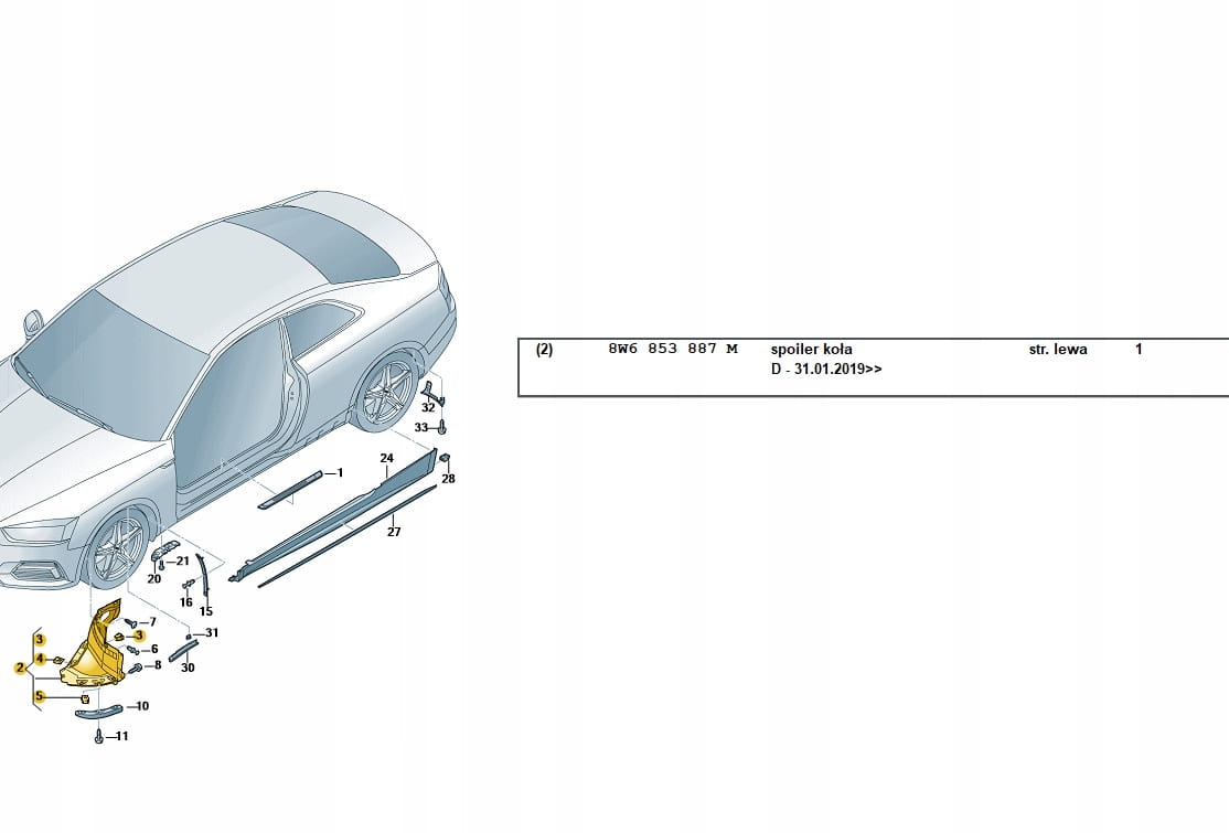 SPOJLER NADKOLA PRAWY PRZÓD AUDI A5 8W6853887M Q