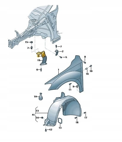 Volkswagen OE 5NA821183 wspornik uchwyt błotnika