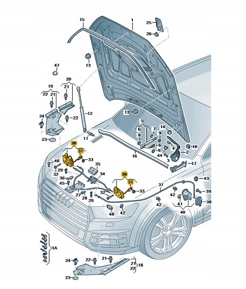 Zamek maski przedniej VW/Audi 4M0823509C. Produkt nowy, oryginalny