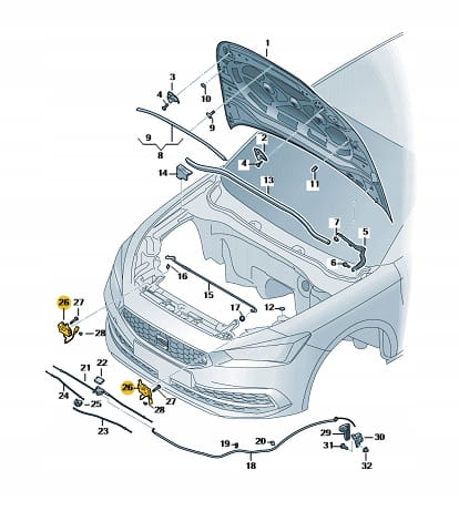 Zamek maski z przełącznikiem 4K0823509A VW/SEAT. Produkt nowy, oryginalny