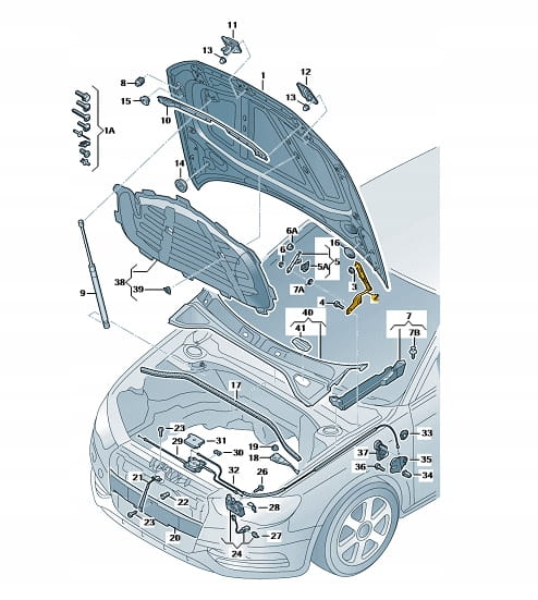 Zawias maski Audi A3/S3/RS3 strona lewa. Produkt nowy, oryginalny
