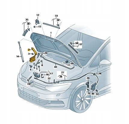 Zawias maski prawy 5TA823302D TOURAN 2016- Nowy Oryginalny