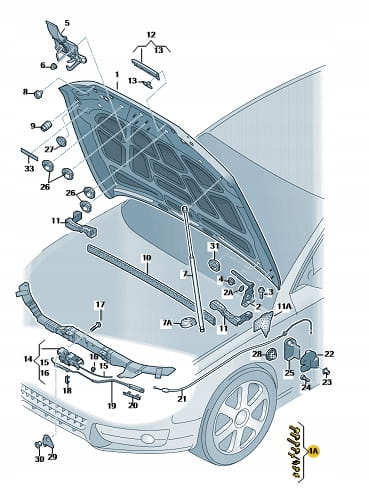 Nowy oryginalny zestaw elementów mocujących maskę przednią do Audi