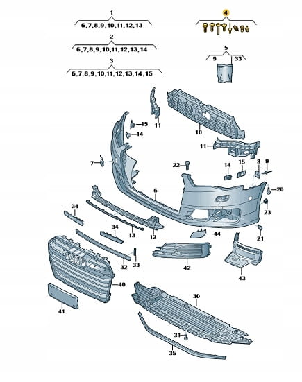 Zestaw montażowy przedni zderzak Audi A6/S6. Produkt nowy, oryginalny