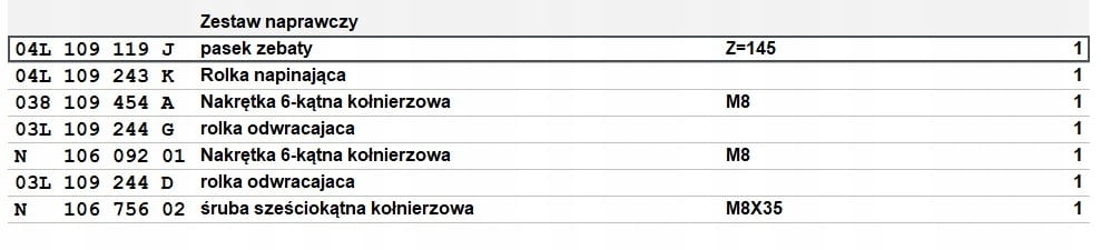 Zestaw naprawczy: pasek i rolka napinaj.